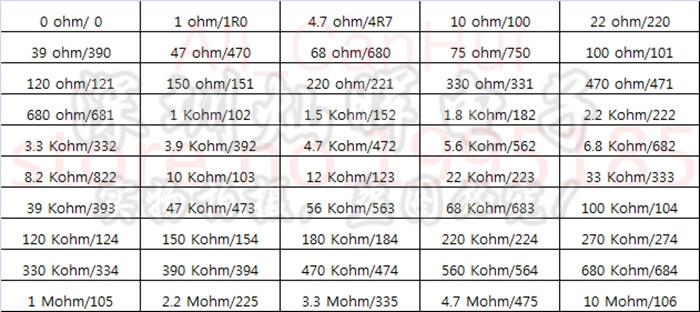 1 Ohm,1.2 Ohm,1.5 Ohm,2 Ohm,2.2 Ohm,2.7 Ohm,3 Ohm,3.3 Ohm,3.9 Ohm,4.7 Ohm,5.1 Ohm,5.6 Ohm,6.8 Ohm,7.5 Ohm,8.2 Ohm,9.1 Ohm.