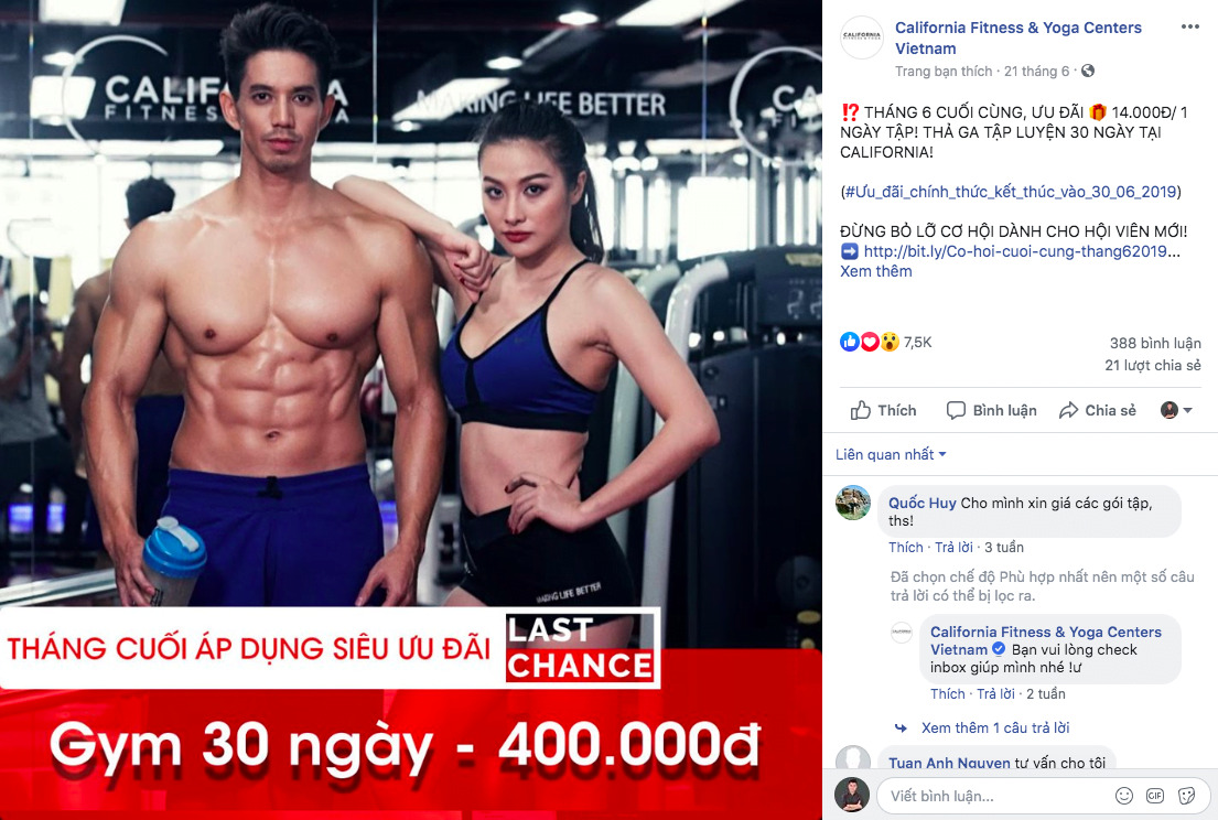 Đây là một hình ảnh bài tập thể hình dùng để chạy quảng cáo Facebook. Bài post đã đầu tư rất kỹ về mặt hình ảnh: có người mẫu , chất lượng hình ảnh cực cao, size ảnh chuẩn với yêu cầu kích thước.