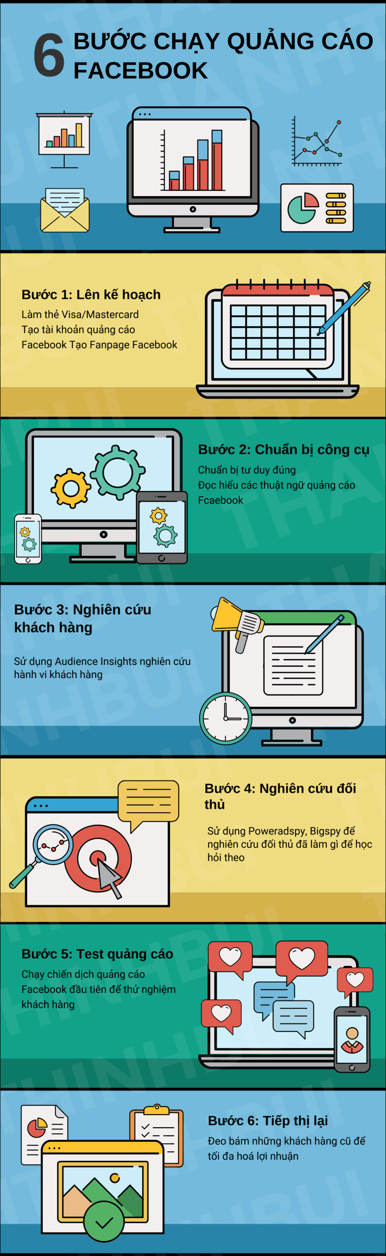 Đây là quy trình 6 bước chạy quảng cáo trên Facebook mà mình tự đúc kết được, phù hợp cho người mới. Bạn sẽ không cần tự mò mẫm kiến thức, rối tung rối mù lên. Bạn cứ bình tĩnh mà làm theo, thắc mắc thì để lại bình luận mình sẽ giải đáp cho bạn.