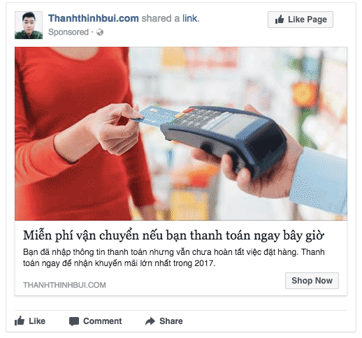 2) Còn đối với khách hàng Initiate Checkout thì sao? Initiate Checkout là khách đang nhập thông tin thanh toán, nhưng vì lí do gì đó họ out ra khỏi website bán hàng. Vì vậy, tệp khách hàng này bạn phải chào mời họ thật sự hấp dẫn, đừng ngần ngại gửi thêm khuyến mãi để đảm bảo họ sẽ thanh toán ngay.