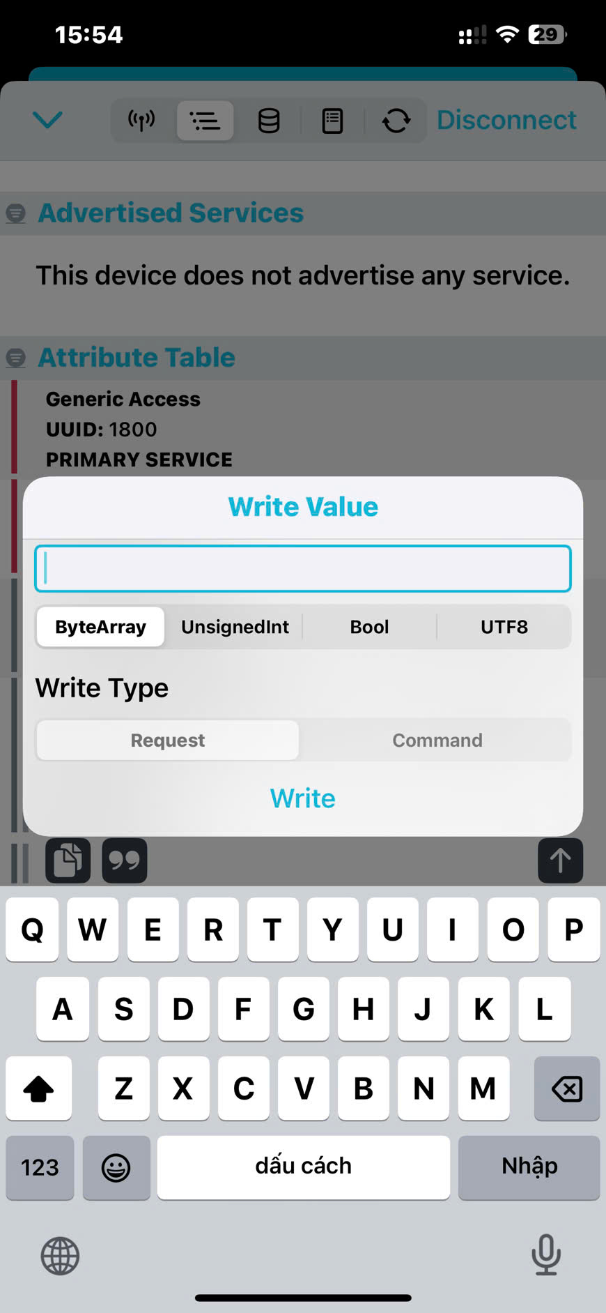 Trên iPhone dùng nRF Connect