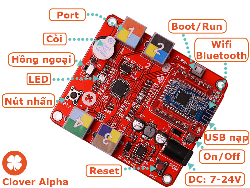 Về cách sử dụng Clover Board và phần mềm CloverBlock các bạn có thể tham khảo ở các bài viết trước về hệ sinh thái Clover. Clover Board được tích hợp sẵn thiết bị thu tín hiệu hồng ngoại.