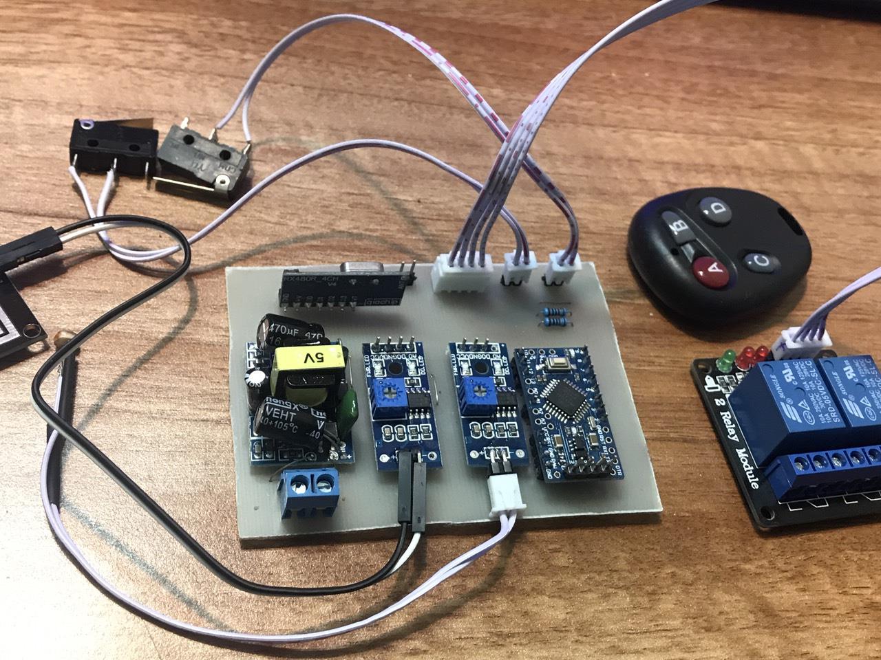 4. Phiên bản 4: Đây là thiết bị sử dụng dùng vi xử lý IC cắm. Thiết bị có cảm biến mưa, cảm biến ánh sáng, khiển RF, nguồn 12V - 24V hoặc 220V. Relay 10A hoặc 30A kết nối ngoài mạch. Mạch dùng cho loại động cơ giảm tốc DC 1 chiều loại lớn hoặc động cơ giảm tốc xoay chiều hoặc động cơ cửa cuốn.
