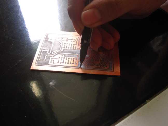 Bỏ miếng mạch vô, rồi lắc đều đến khi được ăn mòn hết những phần trống trên mạch. Sau khi ngâm ăn mòn đồng xong các bạn dùng giấy cọ xoong nồi với một chút xà phòng omo để đánh sạch mực, rửa sạch bằng nước và xấy khô.