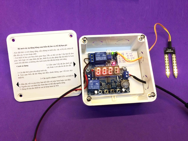 Để khắc phục tình trạng trên, chúng tôi thiết kế ra bộ cảm biến có cả 2 chức năng: cảm biến độ ẩm đất và quy định thời gian tưới cây theo đúng thời gian thực 24h.