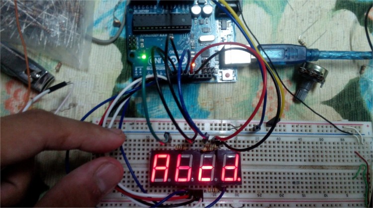 - myDisplay.DisplayString("abcd", 0b00001000); // Thể hiện chữ AbcD ra bảng LED, và dãy số 0b00001000 là vị trí dấu chấm. Bạn hãy thử thay những số 0 bằng số 1 hoặc ngược lại để kiểm nghiệm