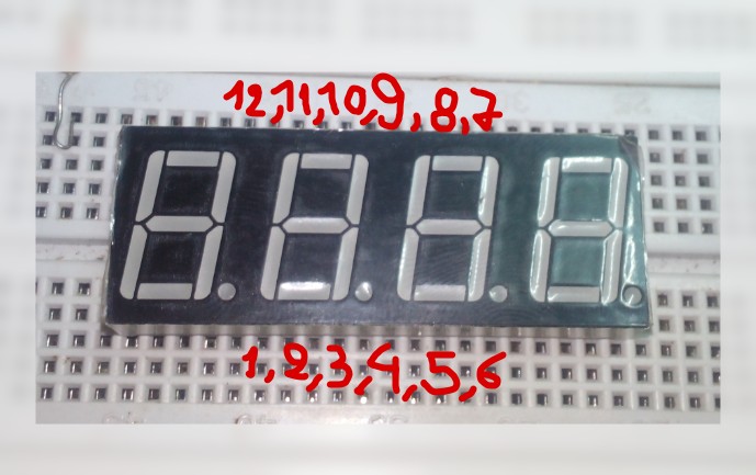 Bạn gắn Module 4 LED số 8 vào bread board, những số màu đỏ là thứ tự chân của Module LED