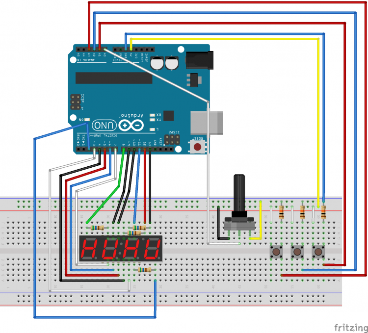 Cuối cùng, bạn upload đoạn code sau đây và "enjoy" dự án đồng hồ của mình thôi! Trong đoạn code mình đã chủ thích khá rõ ràng, bạn hãy đọc trong đó để hiểu hơn nhé! Để debug xem các button và biến trở có hoạt động hay không thì sau khi upload thành công bạn nhấn tổ hợp phím Ctrl+Shift+M nhé.
