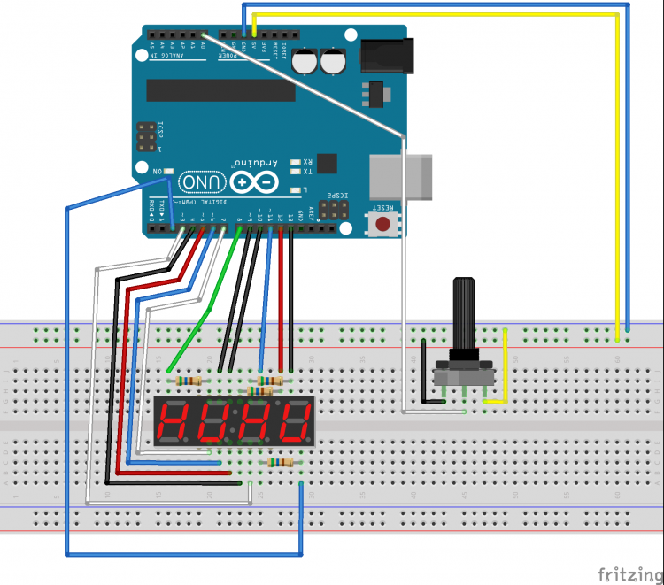 - Chân số 5, 4, 3, 2, 1 lần lượt nối với chân Digital 3, 4, 5, 6, 7