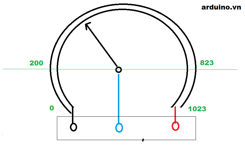 Như đã biết, giá trị trả về của hàm AnalogRead trong khoảng từ 0-1023 (tương ứng mức điện áp 0->5v). Tuy nhiên, để thực hiện ý tưởng điều khiển tuyến tính servo với góc từ 0->180 thì ta phải lấy khoảng giá trị sao cho góc lệch của servo phải tương ứng với góc lệch của biến trở.