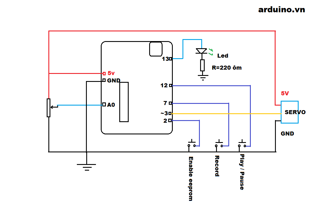 Cách điều khiển servo tự học lệnh và ghi trêm EEPROM