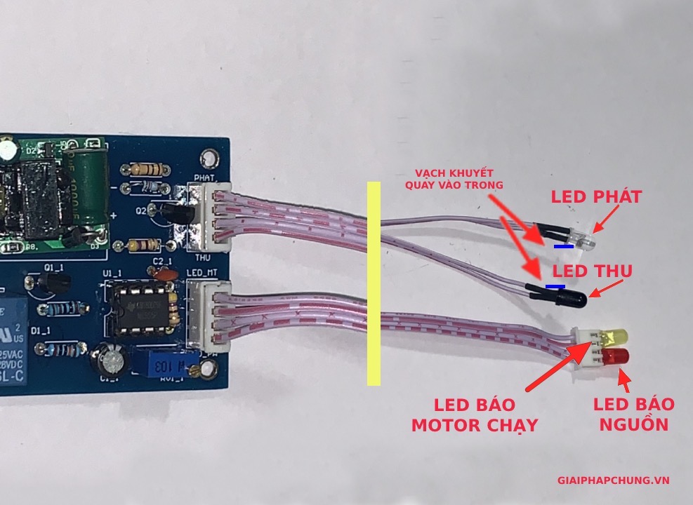 - Lắp đặt cảm biến 2 đầu khoảng cách tối đa 90cm, cần điều chỉnh cho 2 mắt nhìn thẳng nhau.