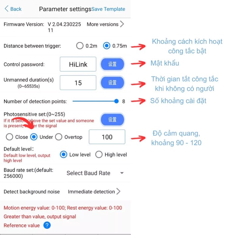 - Công tắc tích hợp sẵn cảm biến biến hiện diện HLK-LD2410 và Cảm biến ánh sáng
