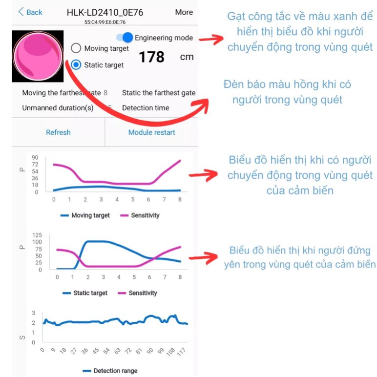 - Phát hiện người khi đứng yên thông qua cảm biến hơi thở và nhịp tim