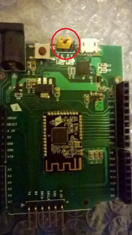 VBLUNO còn có một jumper dùng trong việc nạp code. Bạn phải thay đổi trạng thái của jumper ít nhất là 2 lần nếu bạn muốn sửa và nạp lại code (application => programming => application). Đây là một điểm trừ khá lớn của VBLUNO trong việc prototyping, nhưng nếu bạn xác định dự án của minh đã hoành chỉnh không cần chỉnh sửa phần mềm nữa thì đây không thành vấn đề.