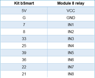 Các bạn nối module 8 relay với mạch bSmart theo sơ đồ sau: