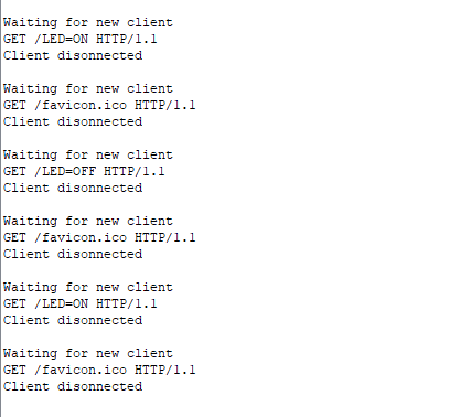 #include <ESP8266WiFi.h> const char* ssid = "Phamson"; const char* password = "phamtheson"; int LED = 16; // GPIO16 (D0) WiFiServer server(80); void setup(){ Serial.begin(115200); pinMode(LED, OUTPUT); digitalWrite(LED, HIGH); Serial.print("Connecting to the Newtork"); WiFi.begin(ssid, password); while (WiFi.status() != WL_CONNECTED) { delay(500); Serial.print("."); } Serial.println("WiFi connected"); server.begin(); Serial.println("Server started"); Serial.print("IP Address of network: "); // will IP address on Serial Monitor Serial.println(WiFi.localIP()); Serial.print("Copy and paste the following URL: https://"); Serial.print(WiFi.localIP()); Serial.println("/"); } void loop(){ WiFiClient client = server.available(); if (!client){ return;} Serial.println("Waiting for new client"); while(!client.available()) { delay(1); } String request = client.readStringUntil('\r'); Serial.println(request); client.flush(); int value = HIGH; if(request.indexOf("/LED=ON") != -1){ digitalWrite(LED, LOW); // Turn LED ON value = LOW; } if(request.indexOf("/LED=OFF") != -1){ digitalWrite(LED, HIGH); // Turn LED OFF value = HIGH; } //*------------------HTML Page Code---------------------*// client.println("HTTP/1.1 200 OK"); // client.println("Content-Type: text/html"); client.println(""); client.println("<!DOCTYPE HTML>"); client.println("<html>"); client.print(" CONTROL LED: "); if(value == HIGH){ client.print("OFF"); } else { client.print("ON"); } client.println("<br><br>"); client.println("<a href=\"/LED=ON\"\"><button>ON</button></a>"); client.println("<a href=\"/LED=OFF\"\"><button>OFF</button></a><br />"); client.println("</html>"); delay(1); Serial.println("Client disonnected"); Serial.println(""); }