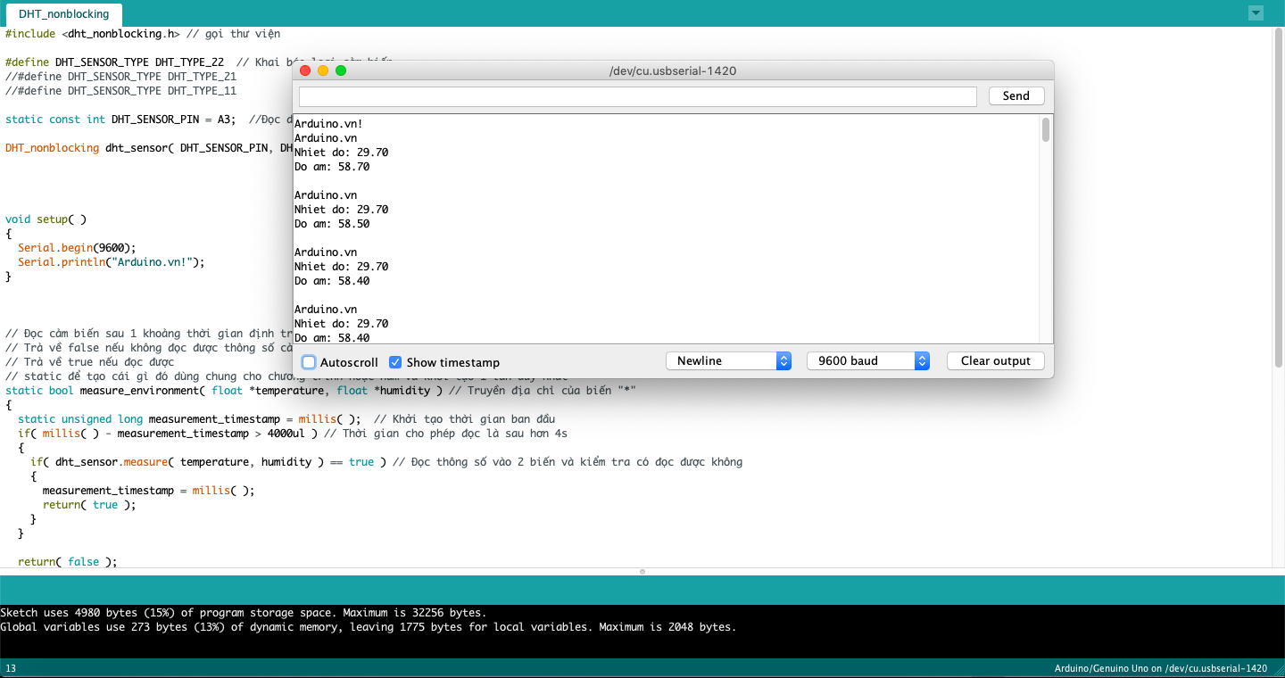 Đọc cảm biến DHT22 bằng 2 cách? (Cách cũ và không bị delay)