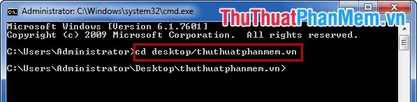 Ví dụ: Nhập cd desktop/thuthuatphanmem.vn và nhấn Enter để chuyển đến thư mục thuthuatphanmem.vn ở Desktop.