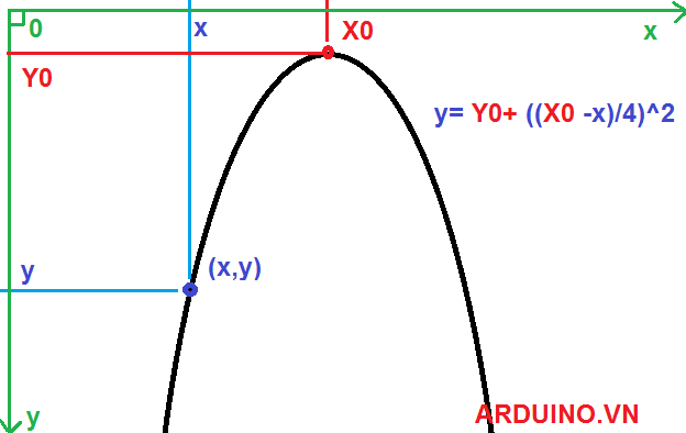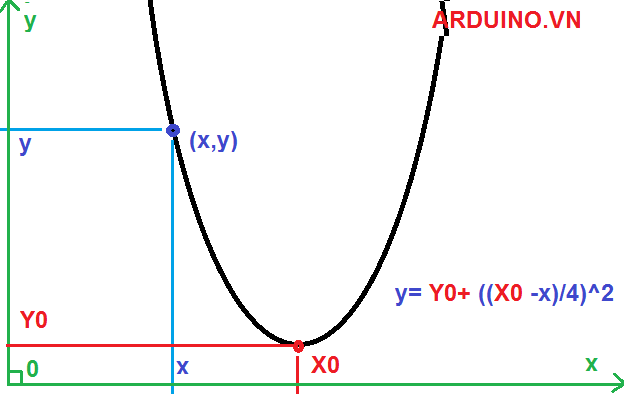 - y = 1.0 + sq((float(X0) - float(x)) / 4.0); //phương trình