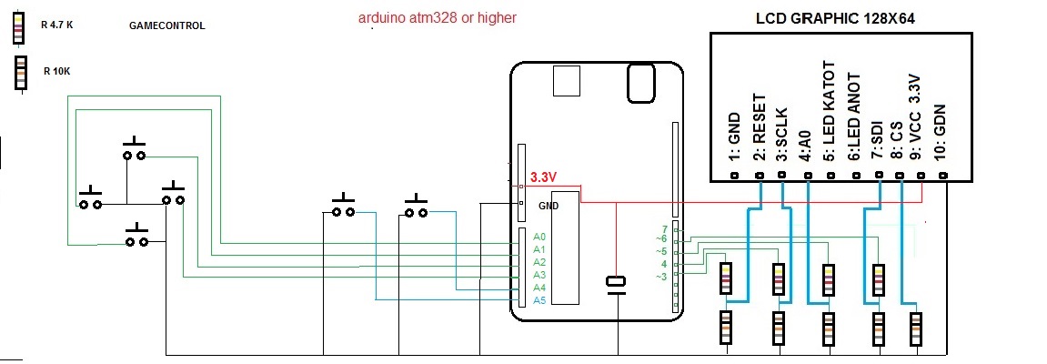 - ST7565 lcd(3, 4, 5, 6); //RST, SCLK, A0, SID
