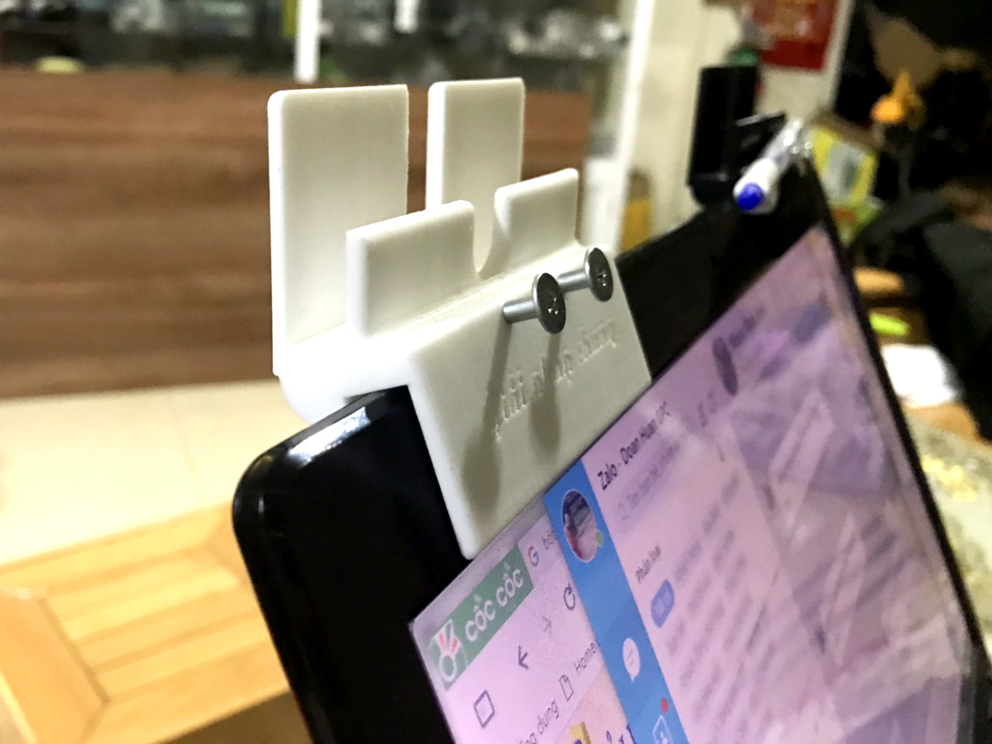 Giá để điện thoại các loại, đồng thời có thể để thêm 1 cái bút nữa, cực kỳ tiện dụng.