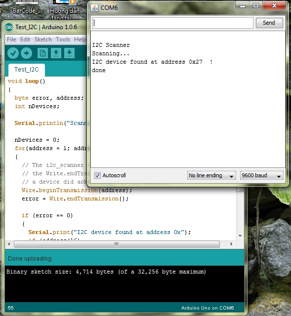 Vậy lcd(0x27,16,2): số 0x27 sẽ tùy thuộc vào loại i2c. Để biết được thông số đó bạn dùng code sau để test, bạn xem thông số đó trên Monitor của chương trình nạp Arduino