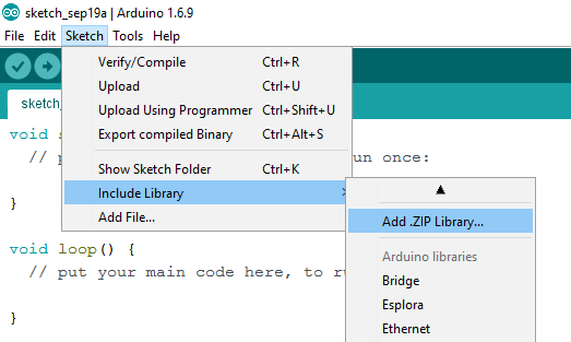 Thêm thư viện vào Arduino IDE: Skecth > Include Library > Add .ZIP Library