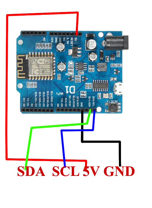 Sau đó nối dây module I2C với Wemos như hình dưới: