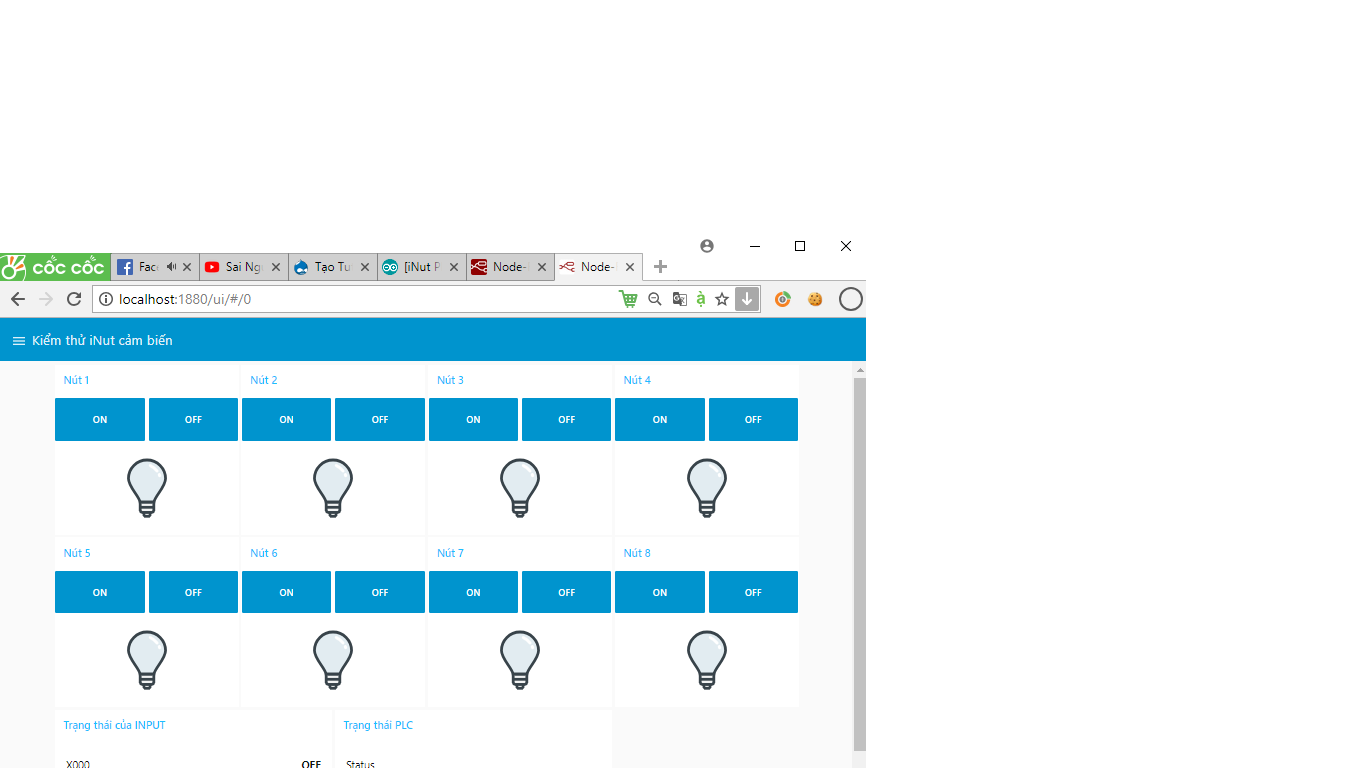 Sau khi vào http://localhost:1880... các bạn có vào mục iNut''s Example chọn ví dụ [Giải pháp][iNut PLC]8 in 8 out PLC (Dòng mitsu, omrom, siemens)
