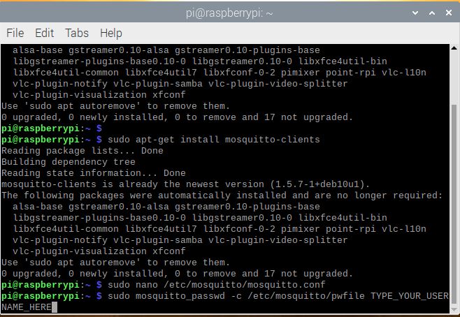 - sudo mosquitto_passwd -c /etc/mosquitto/pwfile TYPE_YOUR_USERNAME_HERE