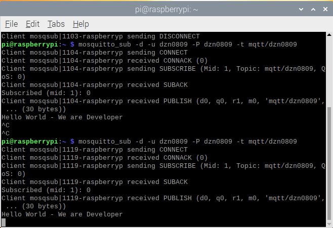 - mosquitto_sub -d -u MOSQUITTO_USERNAME -P MOSQUITTO_PASSWORD -t dev/test