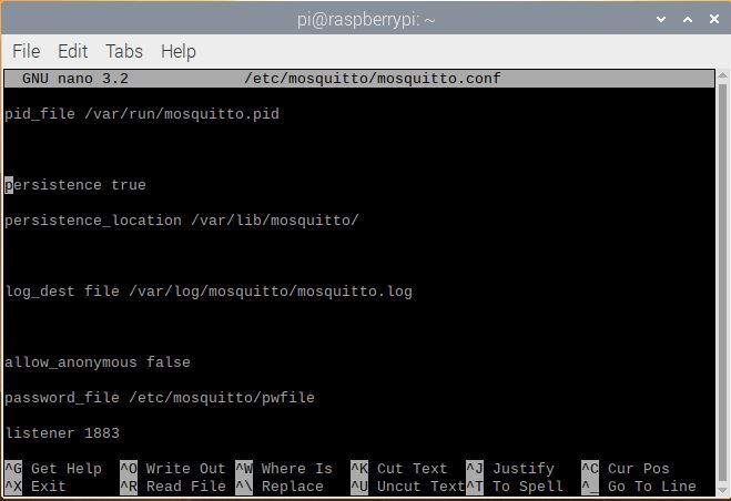 - sudo nano /etc/mosquitto/mosquitto.conf