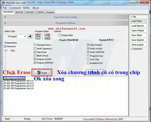 Bước 4: Xóa chip (Xóa chương trình cũ có trong chip)