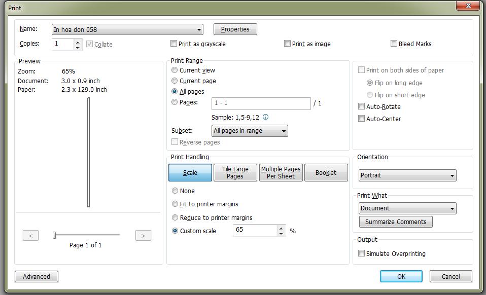 - Với khổ K58: bạn in 65% và nhớ bỏ các tích ở Print bên phải đi