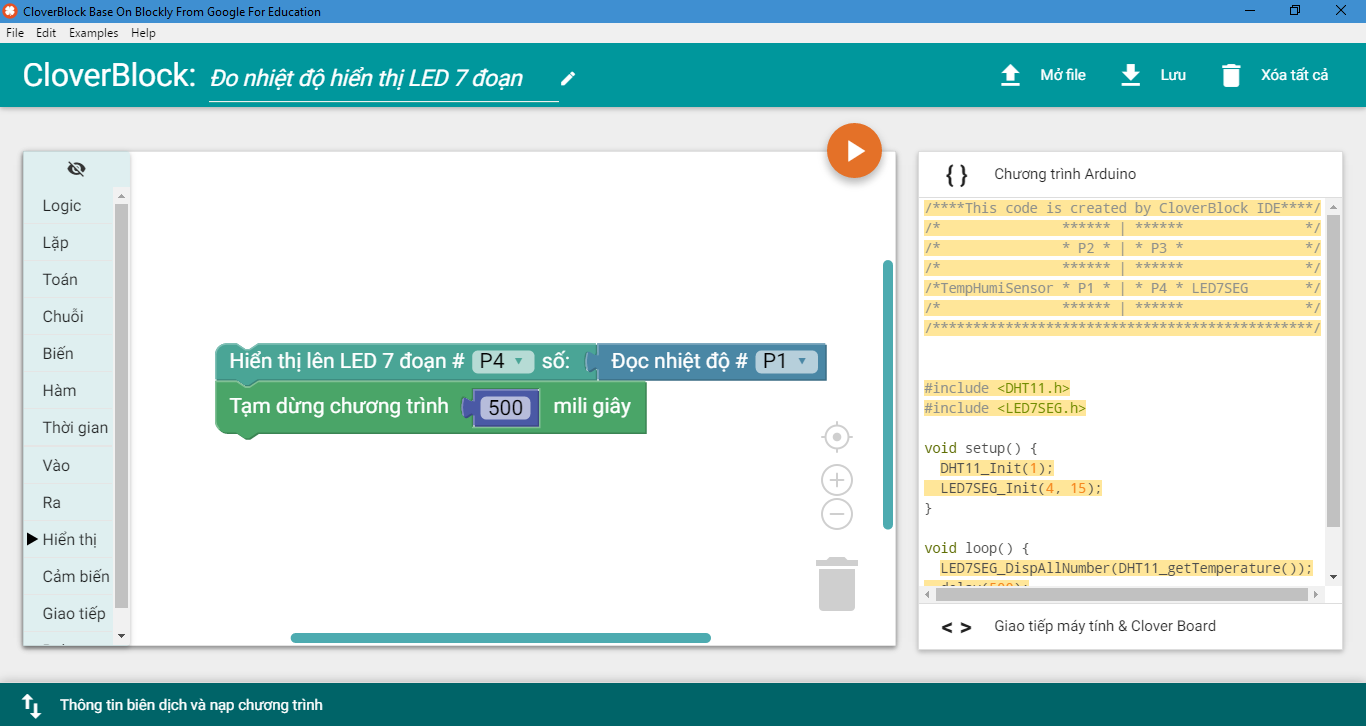 Hướng dẫn lập trình kéo thả các thiết bị cơ bản với CloverBlock