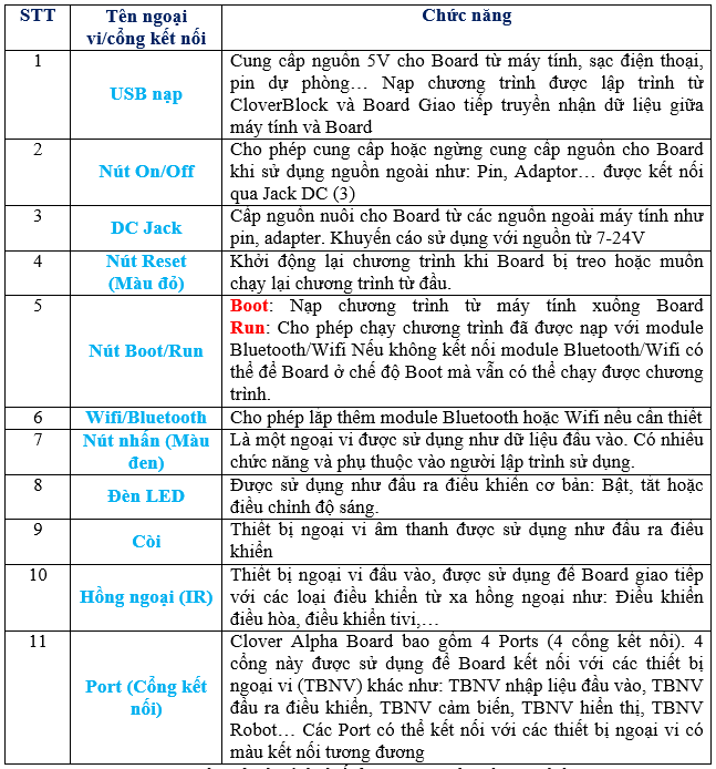 Cấu tạo của Clover Alpha Board