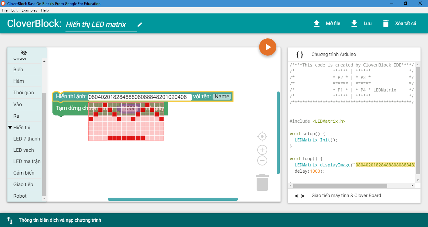 - Để hiểu hơn về CloverBlock và ngôn ngữ lập trình kéo thả trong dạy và học STEM các bạn có thể đọc chi tiết tài liệu “Học lập trình cùng CloverBlock”.