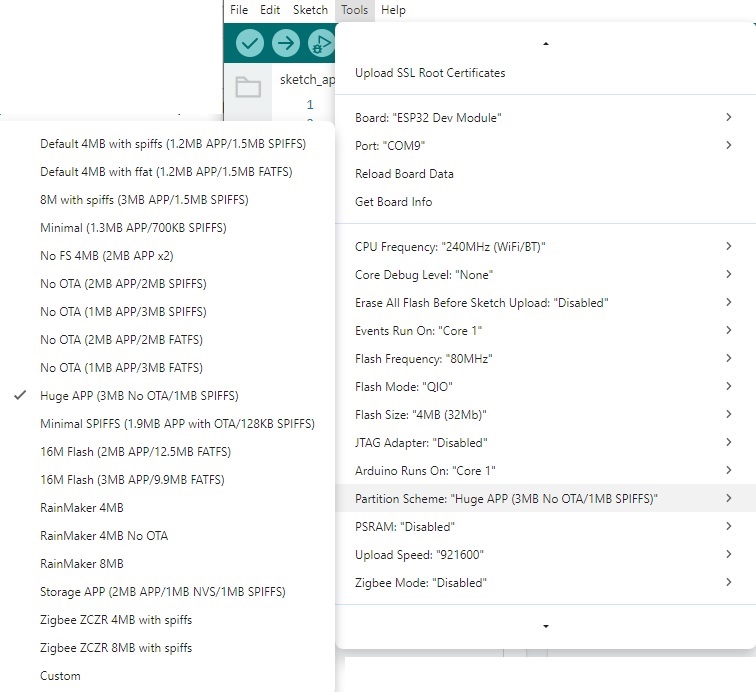 Huge APP (3MB No OTA/1MB SPIFFS)