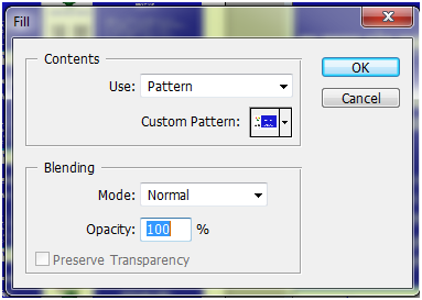 Vào Edit chọn Fill -> Chọn mẫu đã lưu