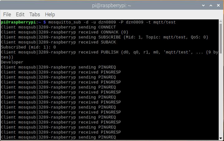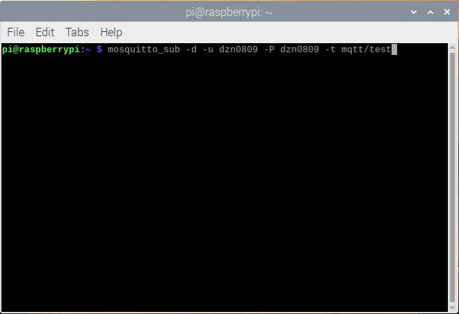 - mosquitto_sub -d -u MOSQUITTO_USERNAME -P MOSQUITTO_PASSWORD -t dev/test