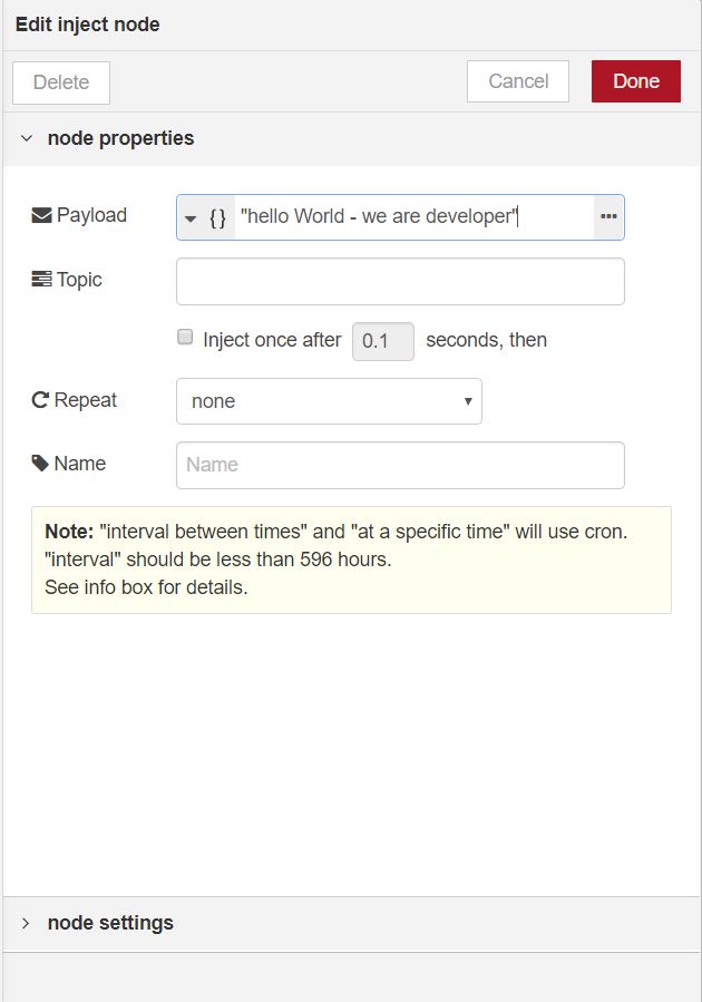 Bước 4: Setup các thông số trên các block trên iNut-Node-RED-IDE