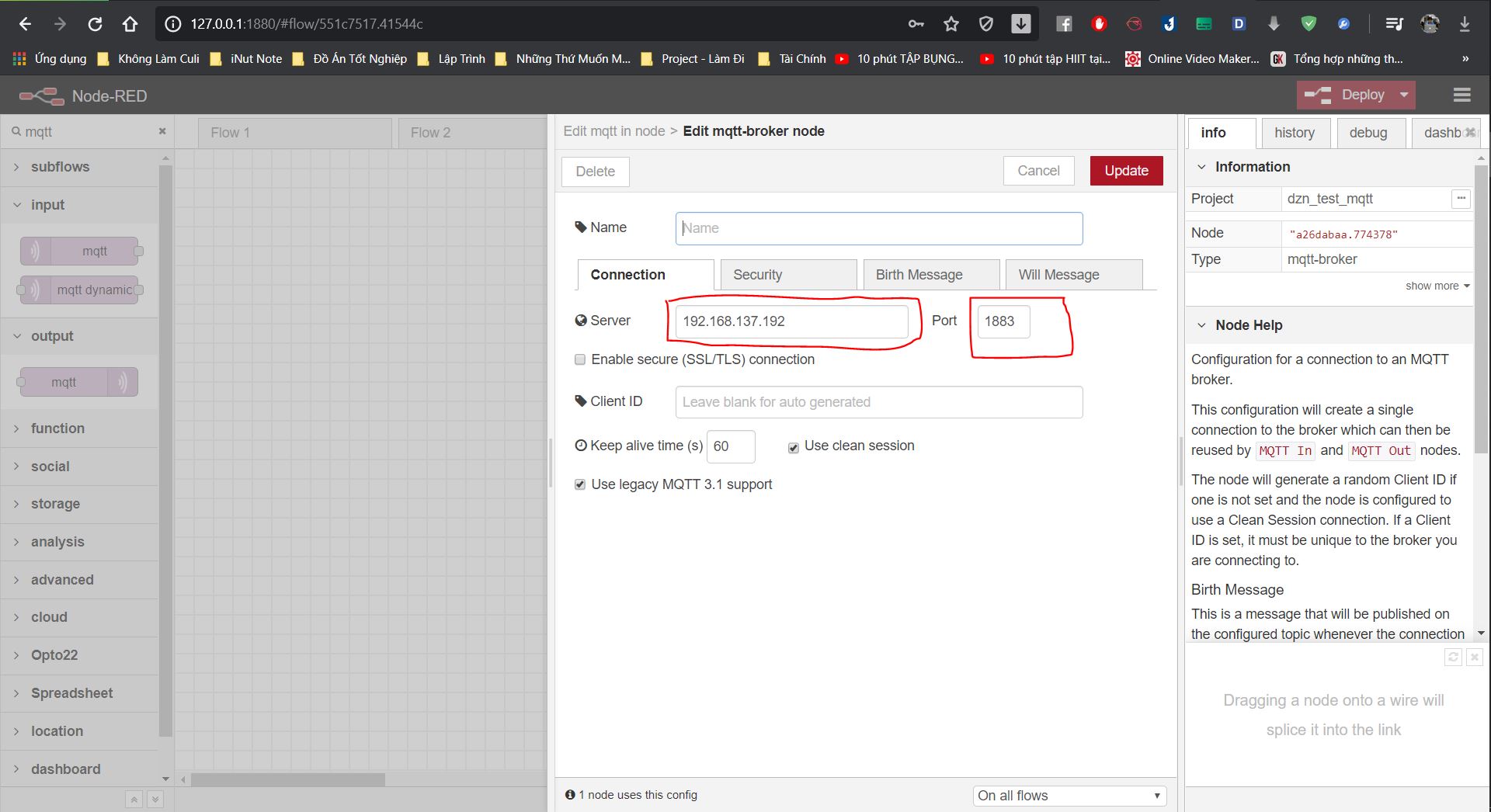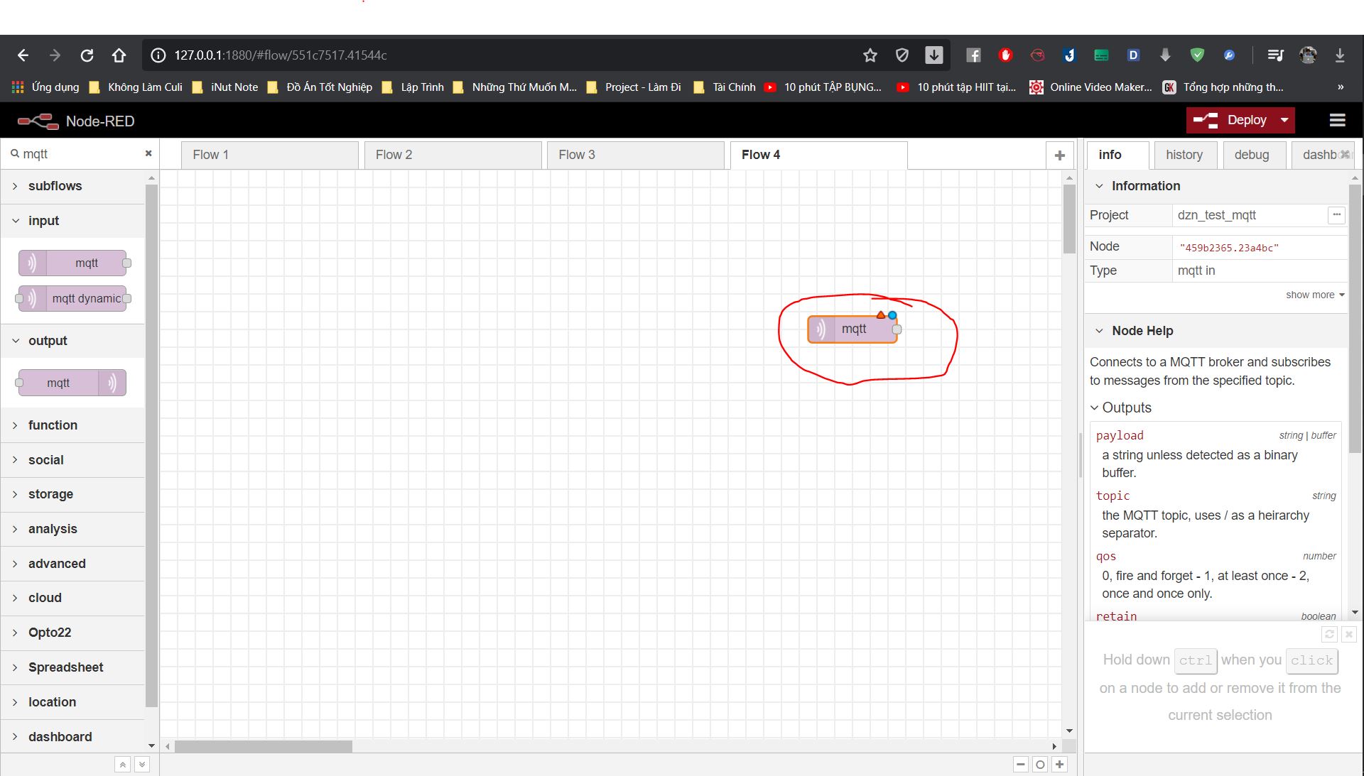 sau khi bạn nhấp update, tiếp theo sẽ nhấn deploy, nếu thấy khối MQTT hiện trạng thái connected là chính xác nhé.