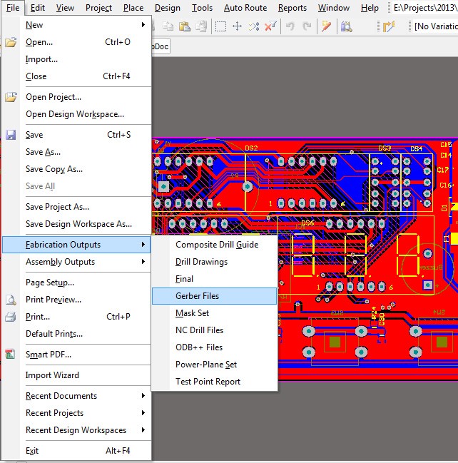 Bước 2: Xuất Gerber: File -> Fabrication Outputs -> Gerber Files