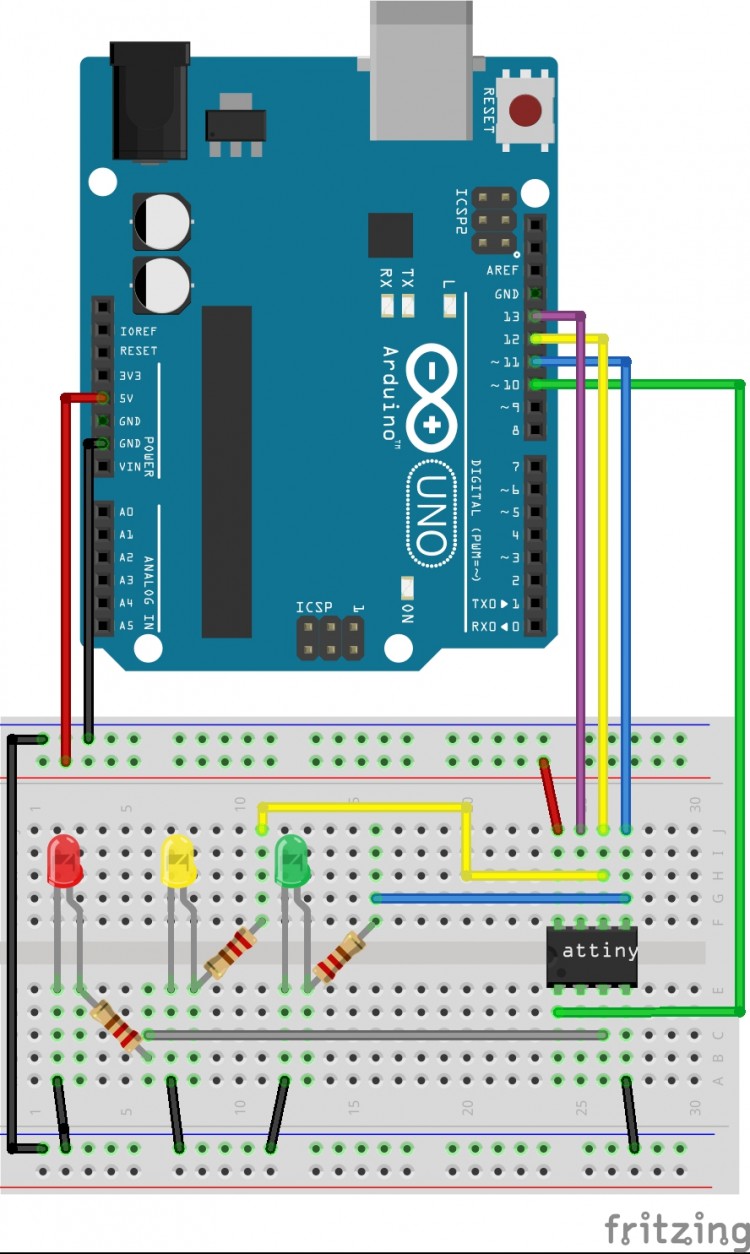Đèn giao thông đã quá quen thuộc với các bạn phải không nào. Với những ánh đèn đầy màu sắc này, bạn có tạo thành một cột đèn giao thông cực kì đơn giản cho sa bàn của bạn. Hôm nay, chúng ta sẽ dành ra khoảng 20 phút để làm mạch đèn đầy sáng tạo này nhé. Qua bài viết này, mình hi vọng bạn sẽ học cách sử dụng bé ATTiny13 để lập trình những ứng dụng yêu cầu kích thước bé nhé.