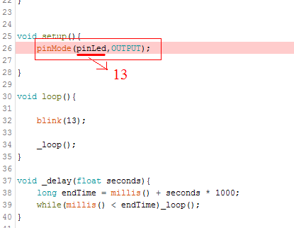 Trong hàm setup, ta chỉnh pinLed thành 13. Nếu blink thêm chân 12 thì tạo thêm 1 dòng pinMode(12,OUTPUT); ở hàm setup.