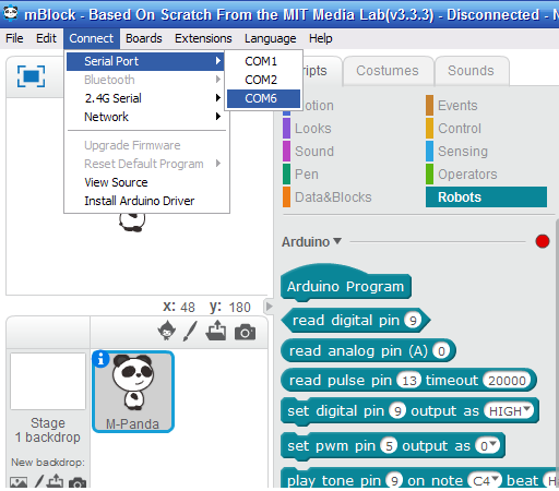 - Arduino đã úp firmware của mBlock (Chưa biết cách thì xem lại phần 16)