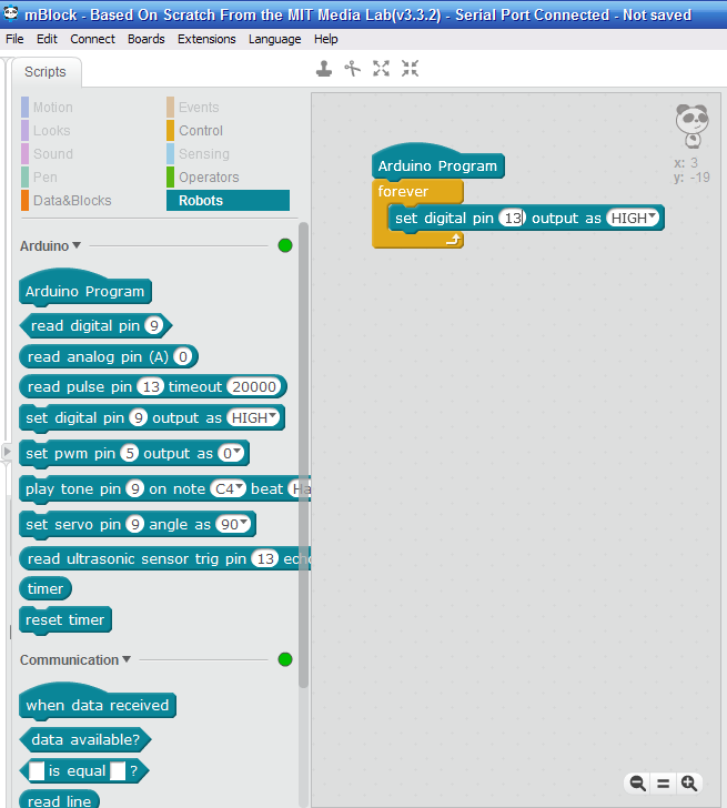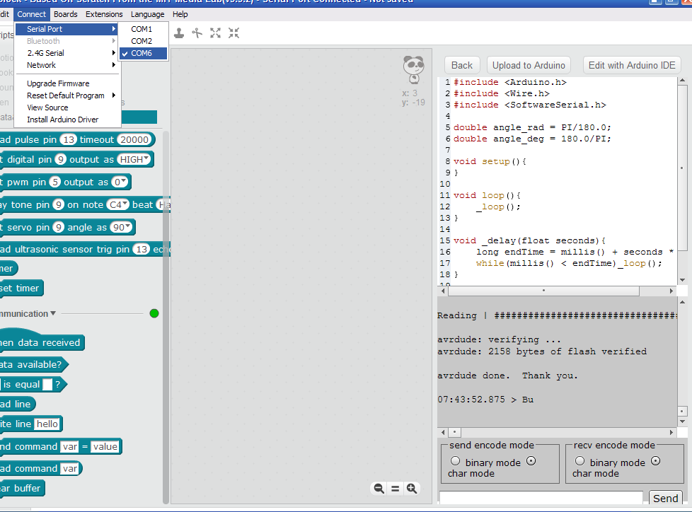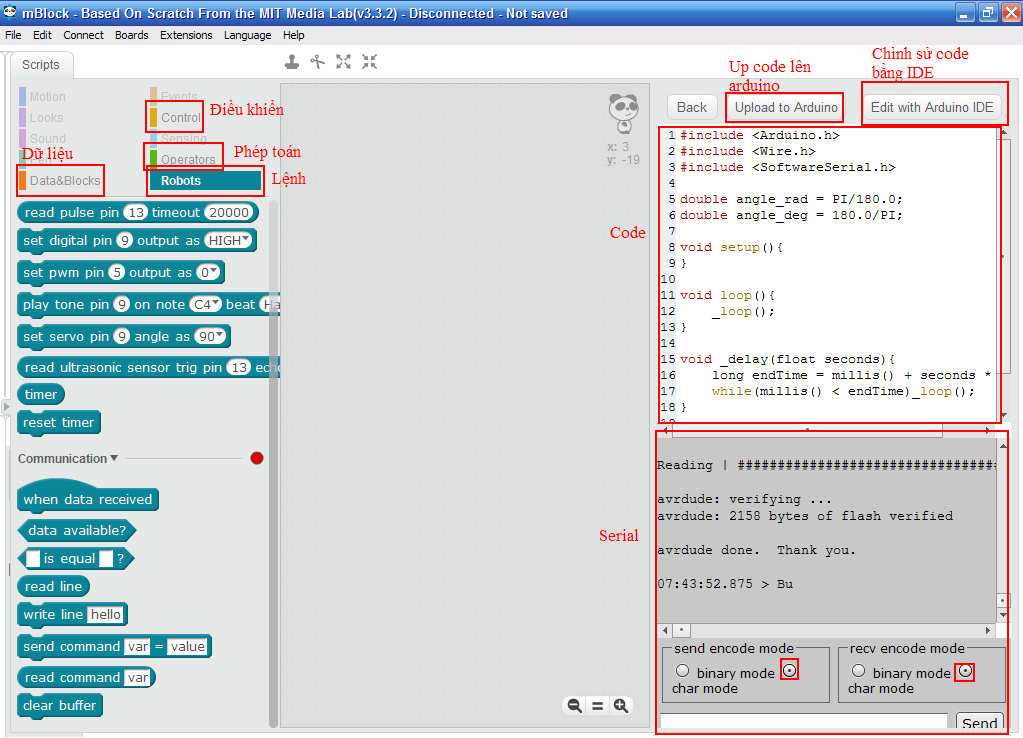 Chọn chế độ up code (Nếu không chọn bạn phải up cho con arduino cái firmware thì mới lập trình được)