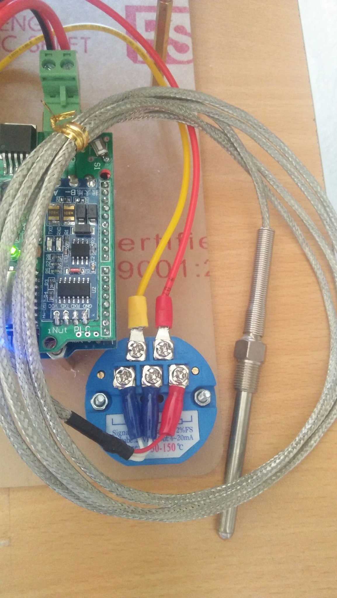 Cảm biến được dùng là cảm biến nhiệt độ chuẩn tín hiệu 4-20mA.