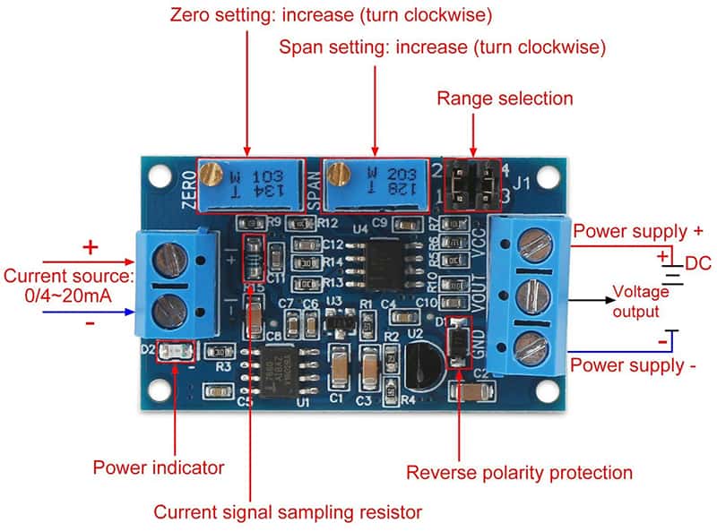 Trong quá trình truyền tín hiệu , tín hiệu điện áp sẽ yếu hơn khi khoảng cách truyền tăng lên. Việc truyền dòng điện có thể tránh sự suy yếu của tín hiệu. Mạch chuyển tín hiệu dòng áp này được sử dụng ở điểm cuối của truyền tín hiệu dòng điện giúp chuyển đổi tín hiệu dòng thành tín hiệu điện áp. Đầu vào dòng điện 4-20mA và đầu ra điện áp hỗ trợ 0-3.3V 0-5V 0-10V .